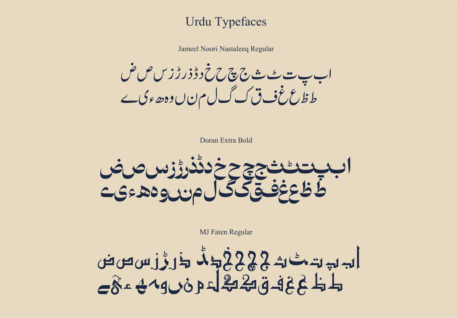 Inspired by Fraktur Mon Amour by Judith Schalansky, where typography is used to create various designs, this project centers around the Urdu script instead of English. Urdu is my first language, a core part of my identity that I use every day to communicate with family and friends. By centering this project around my native script, I aimed to stay connected to my roots and showcase the beauty of a language that feels like home.